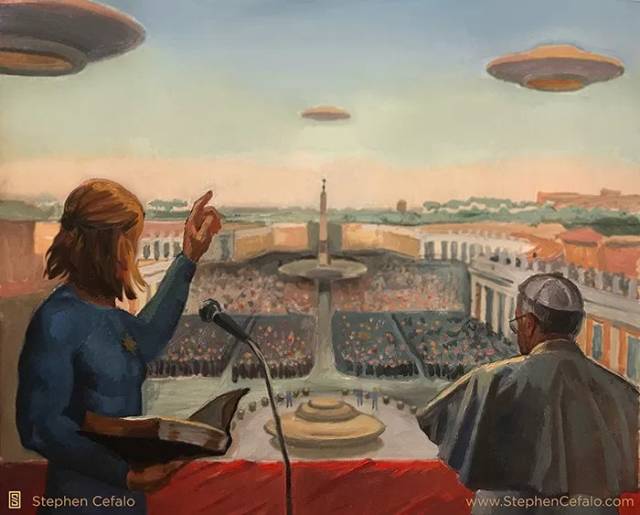 非常感謝史蒂芬·切法洛和球形存有聯盟允許本文使用教皇與北歐外星人在一起的圖片